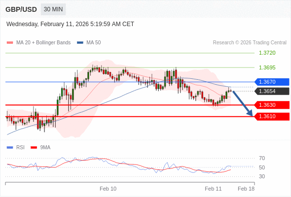 在 1.3670 之下,看跌,目标价位为 1.3630 ,然后为 1.3610 。