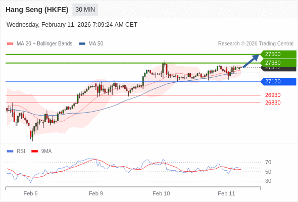 在 27120 之上,看涨,目标价位为 27380 ,然后为 27500 。