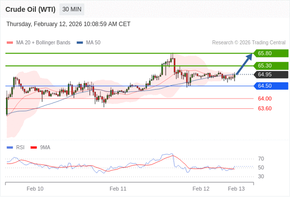 在 64.50 之上,看涨,目标价位为 65.30 ,然后为 65.80 。
