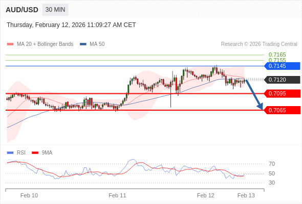 交易策略: 在 0.7145 之下,看跌,目标价位为 0.7095 ,然后为 0.7065 。