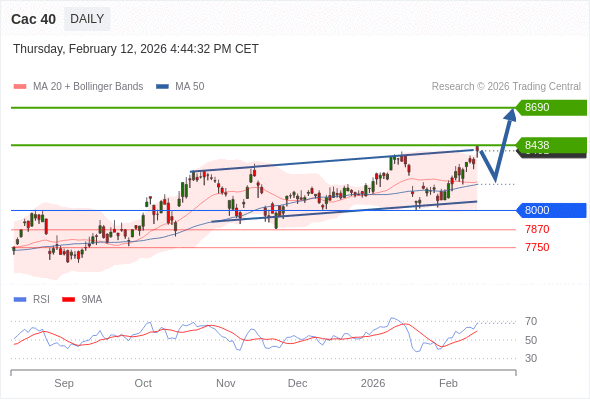 Cac 40 短线: 看涨。