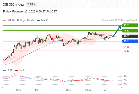 沪深300指数 短线: 在4565之上,看涨。