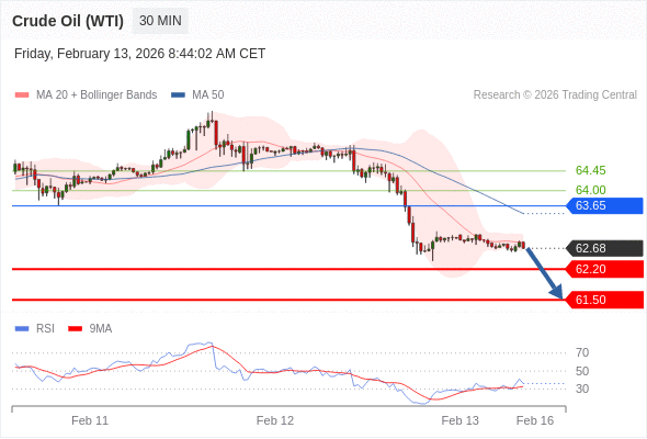 在 63.65 之下,看跌,目标价位为 62.20 ,然后为 61.50 。