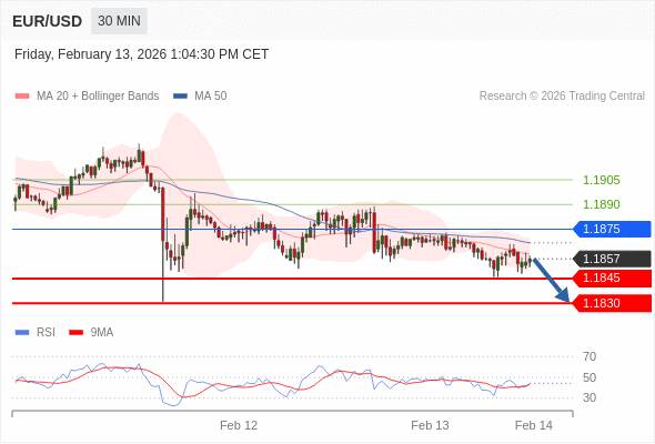 在 1.1875 之下,看跌,目标价位为 1.1845 ,然后为 1.1830 。