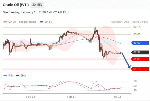 在 63.00 之下,看跌,目标价位为 61.85 ,然后为 61.15 。