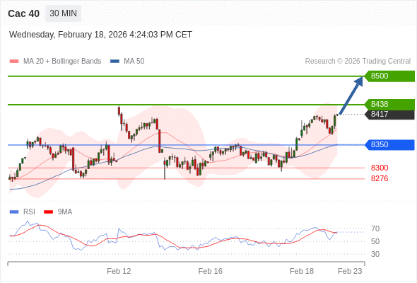 在 8350 之上,看涨,目标价位为 8438 ,然后为 8500 。