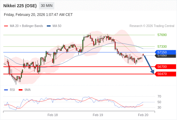 日经225股指期货 (OSE) 当日内: 短期关键阻力位在57150。