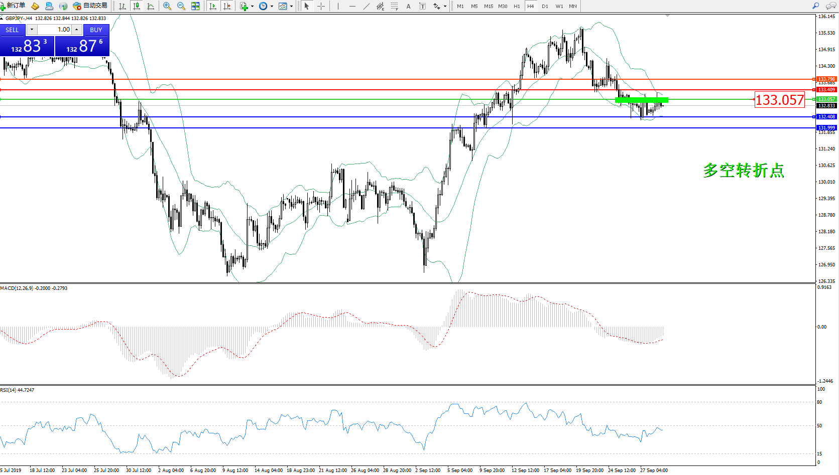 备选策略:133.057上方看涨,目标133.409、133.798