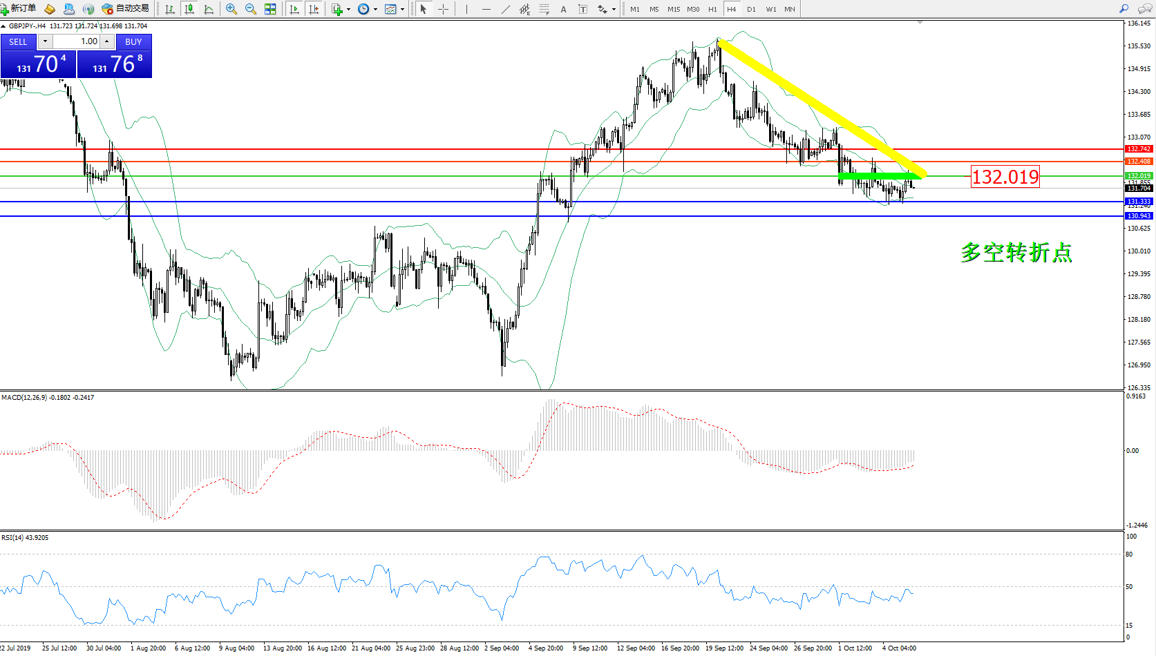 交易策略:132.019下方看跌,目标131.333130.943