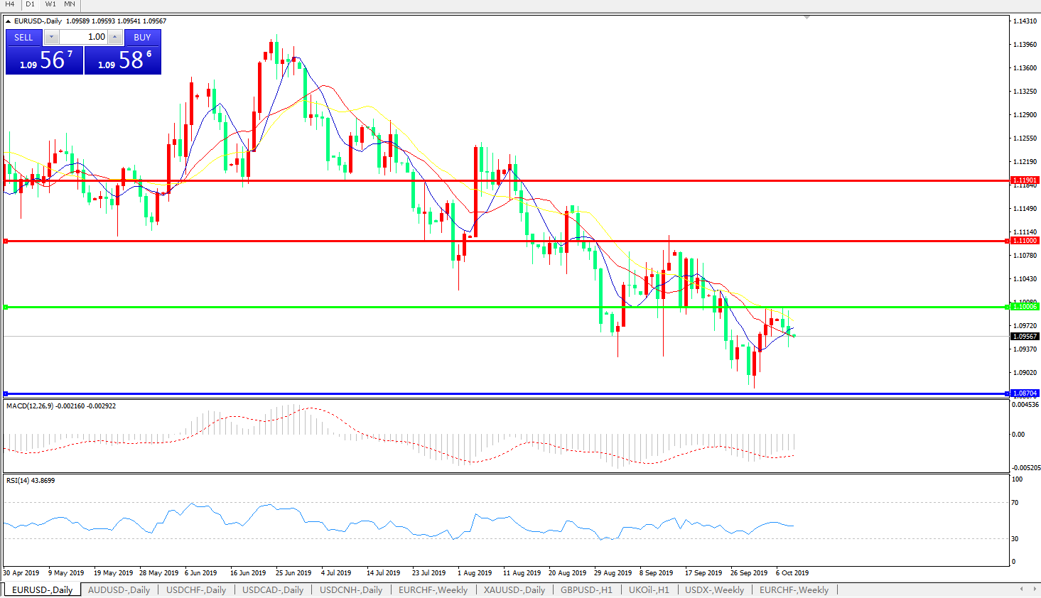 欧元兑美元EURUSD   日线图:
