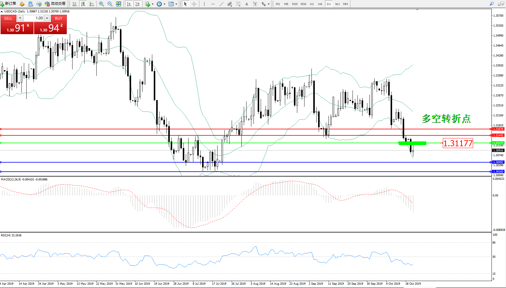 交易策略:1.31177下方看跌,目标1.304921.30160