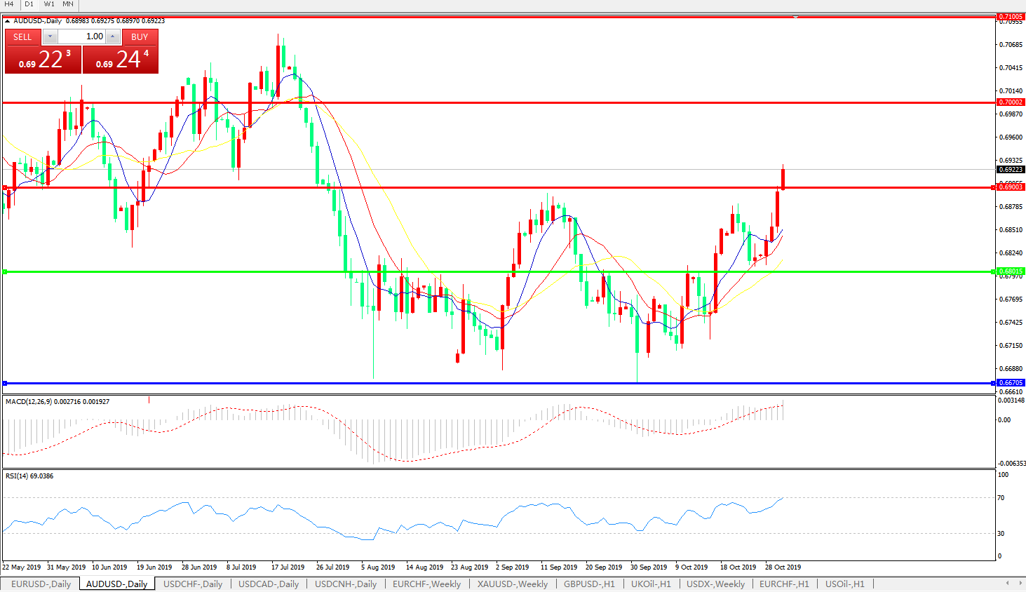 压制位:0.6900 0.7000