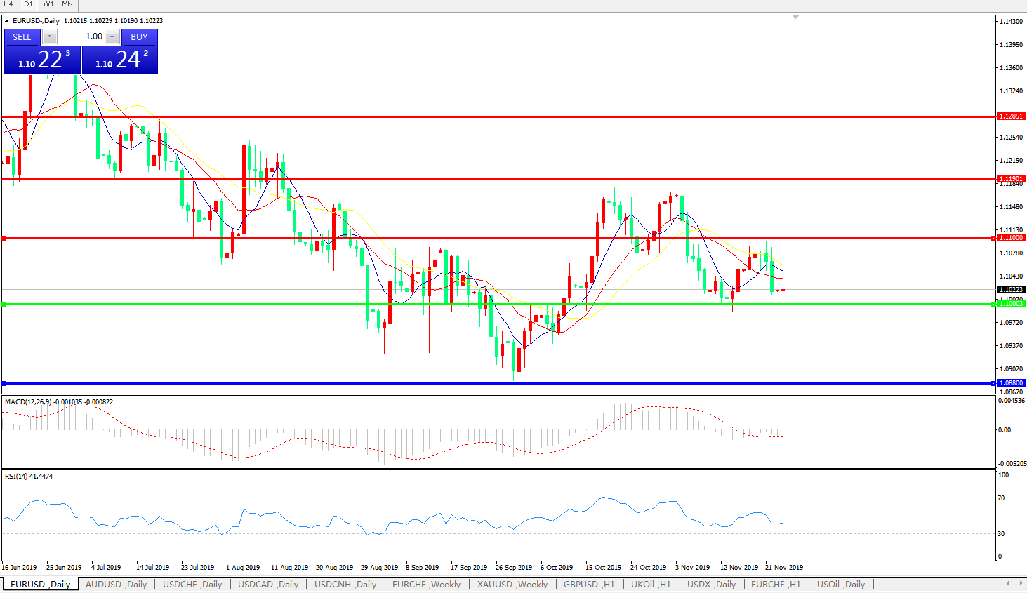 交易策略:1.1000上方看涨,目标1.1100、1.1190