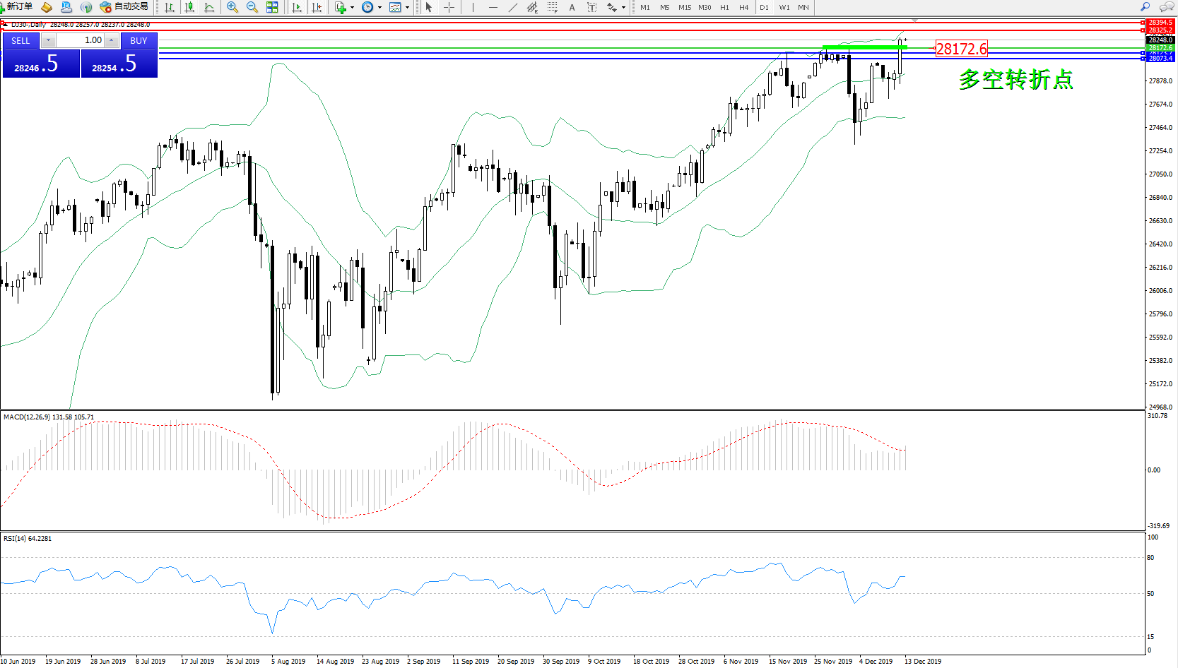 道琼斯指数12月12日(周四)收盘上涨220.80点,涨幅0.79%,报28132.12点。美国总统特朗普发表的关税方面言论,提振了市场乐观情绪,资金流入股市。美股三大指数盘初刷新历史新高,美元表现优于大多数G-10货币。10年期美国国债收益率一度攀升13个基点至1.92%,原因是贸易局势的发展刺激风险偏好增强。
