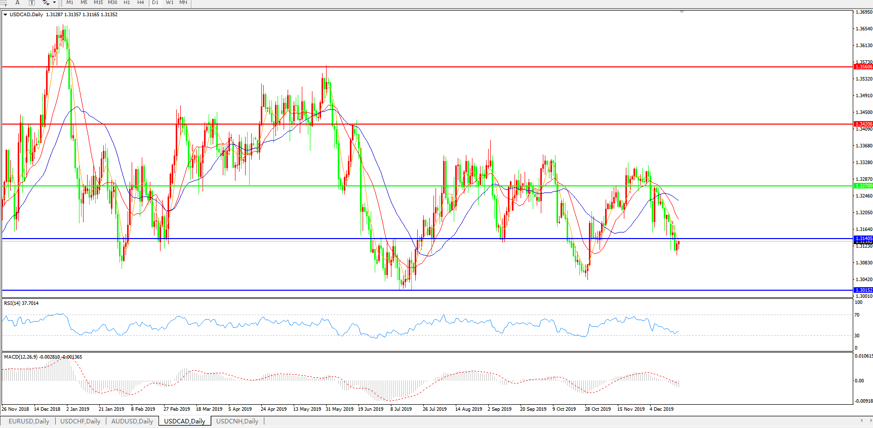 美元兑加元USDCAD    日线图: