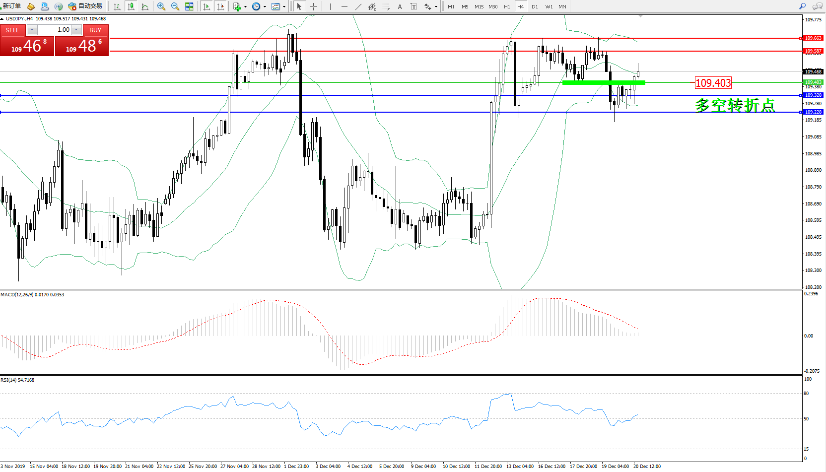 交易策略:109.403上方看涨,目标109.587、109.663