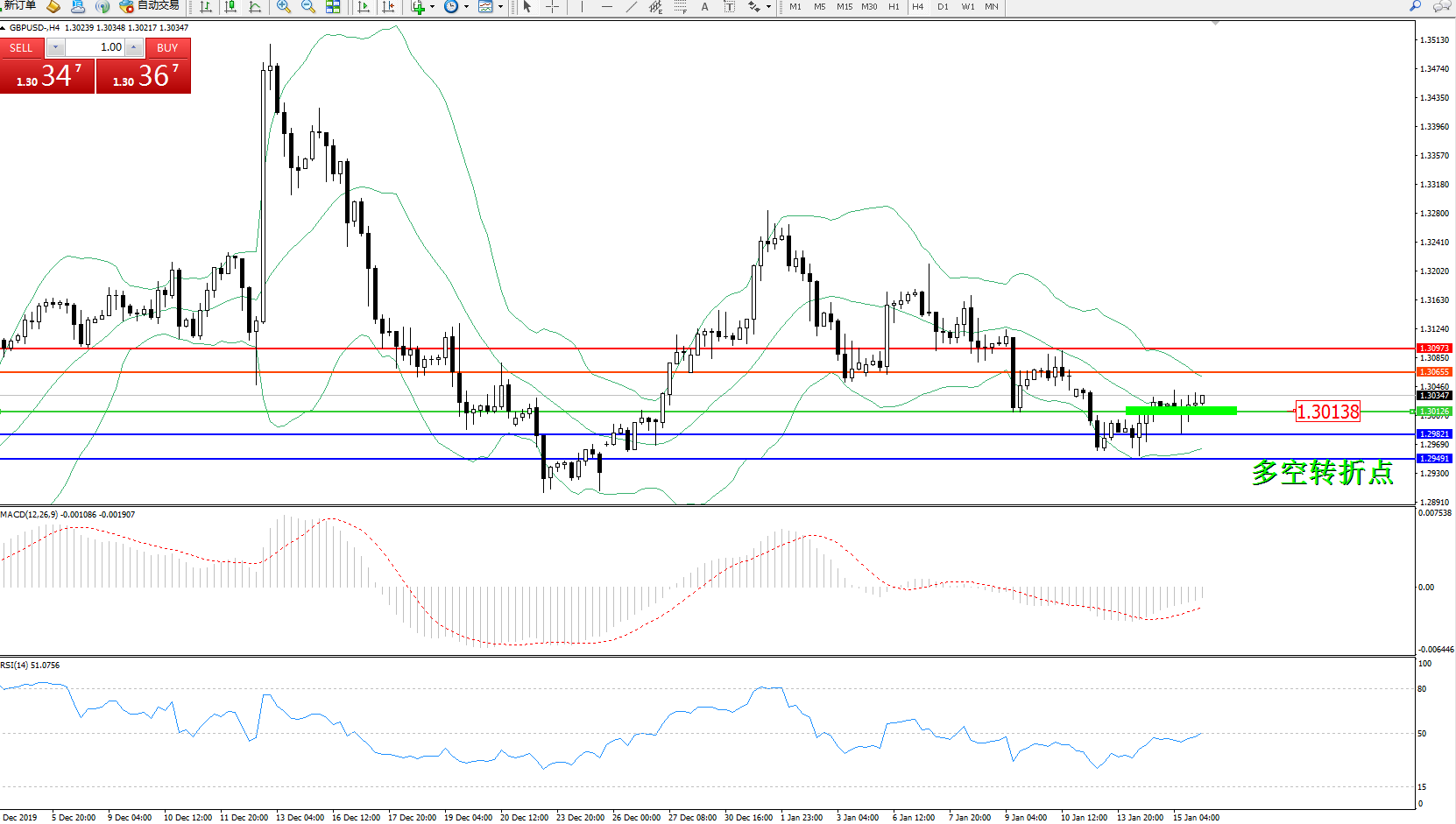 交易策略:1.30138上方看涨,目标1.30655、1.30973