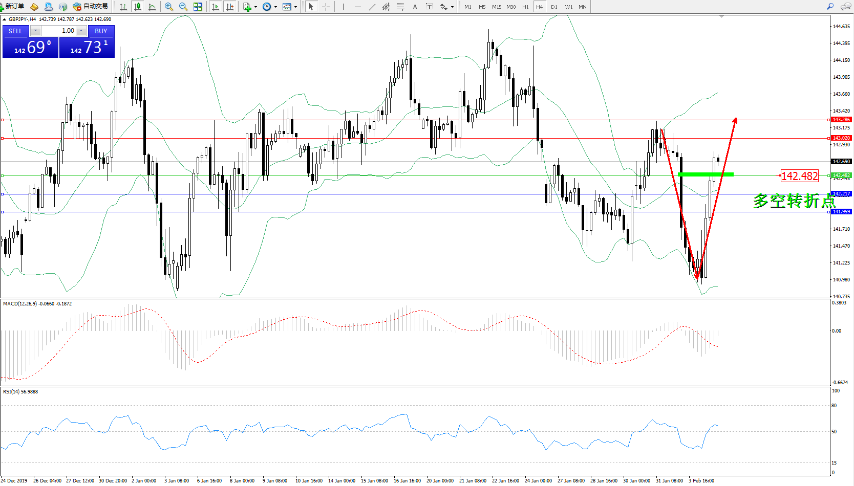 交易策略:142.482上方看涨,目标143.020、143.286