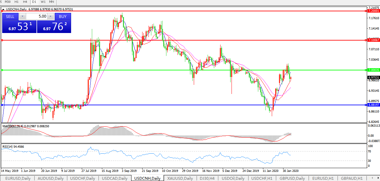 交易策略: 在7.0000之下,看跌,目标价位为6.8820,然后为6.7600。