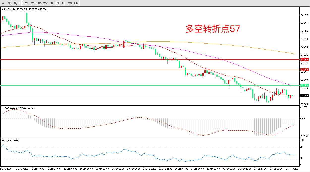 交易策略:在57.00之下看跌,目标55.00    52.00
