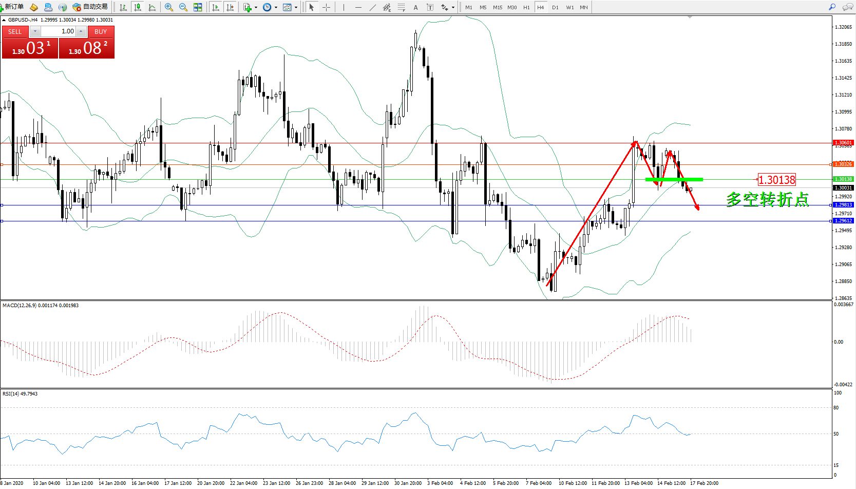 备选策略:1.30138上方看涨,目标1.30326、1.30601
