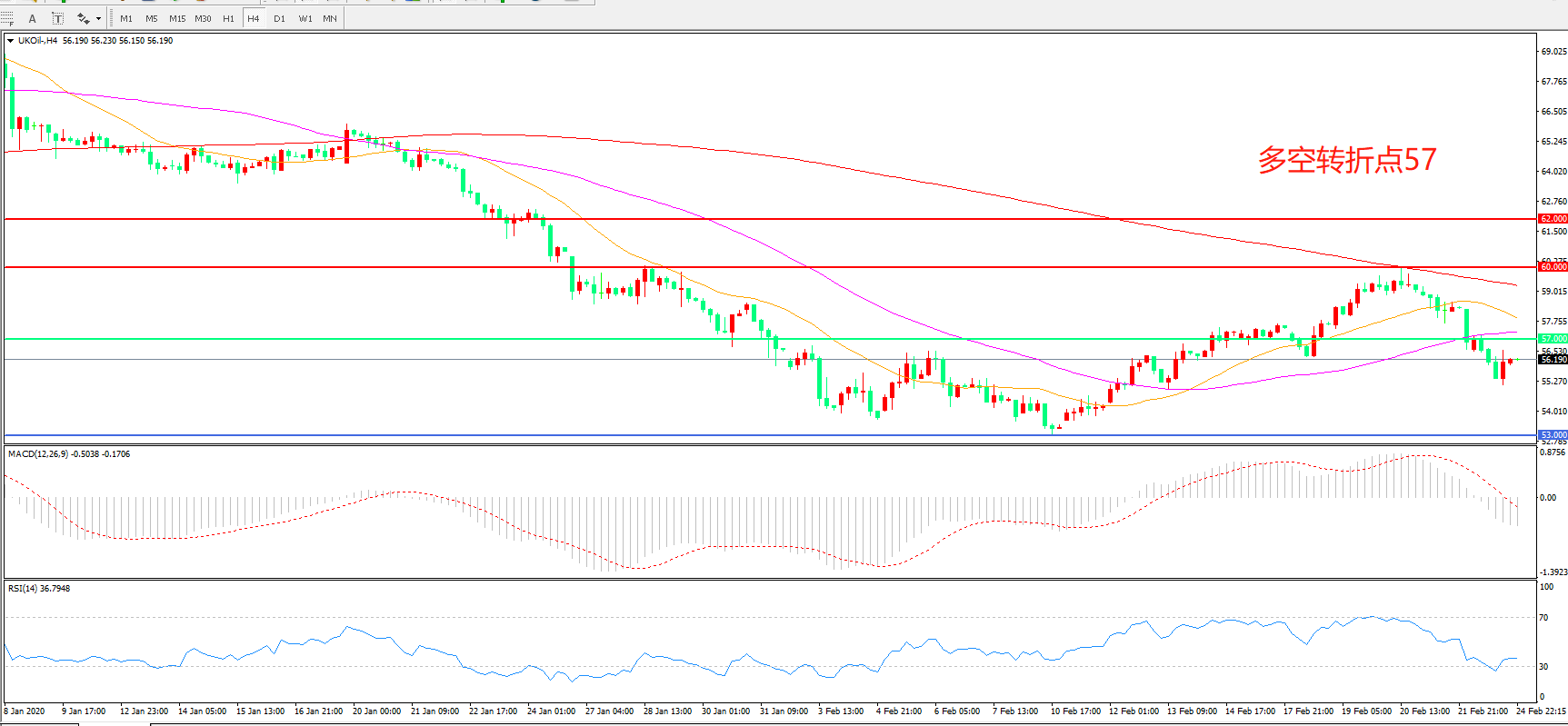多空转折点:57.00
