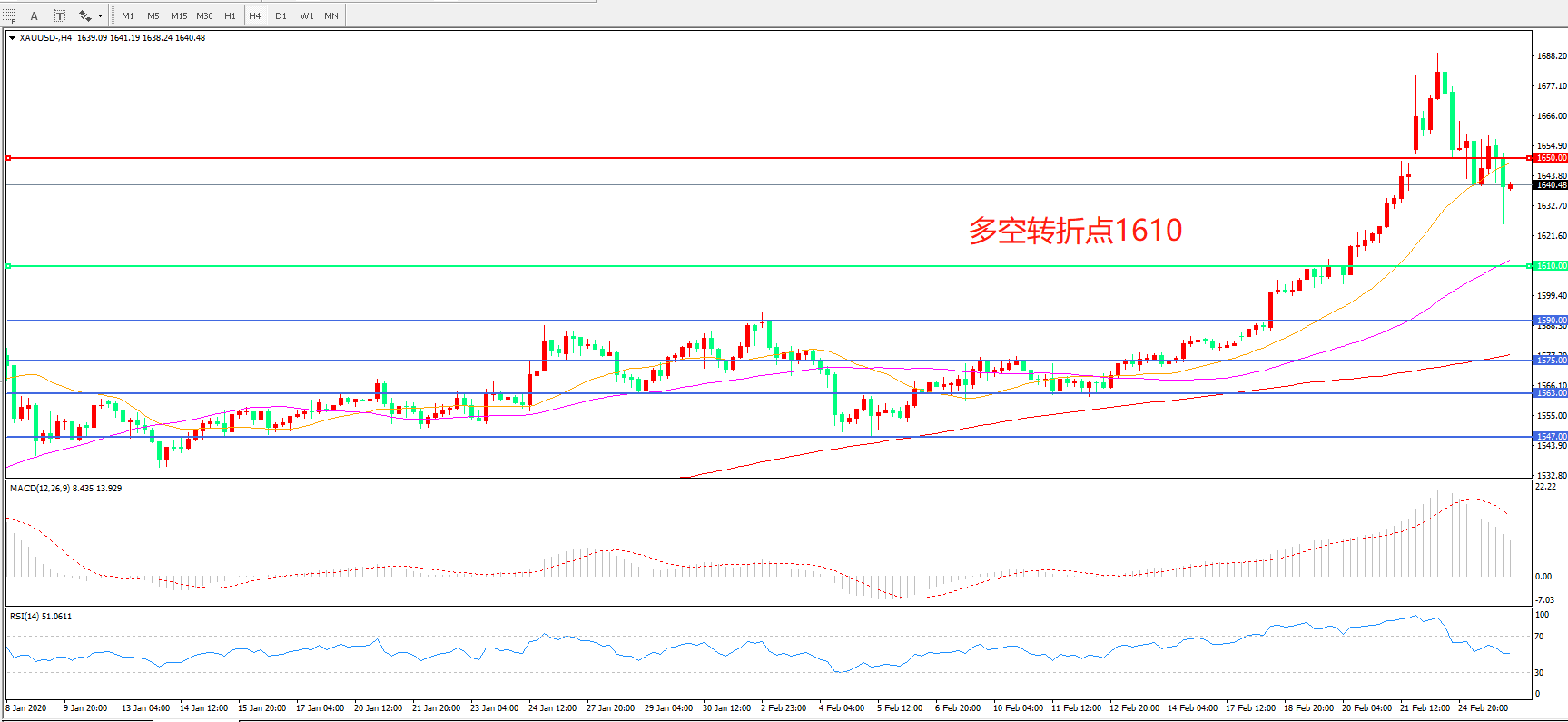 备选策略:在1610.00之下看跌,目标1650.00   1700.00