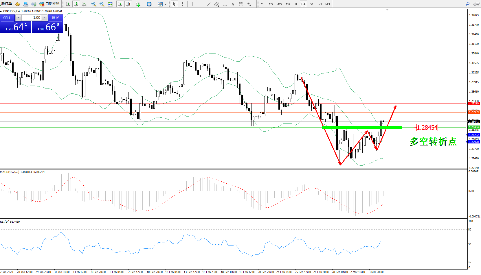 交易策略:1.28454上方看涨,目标1.289391.29219