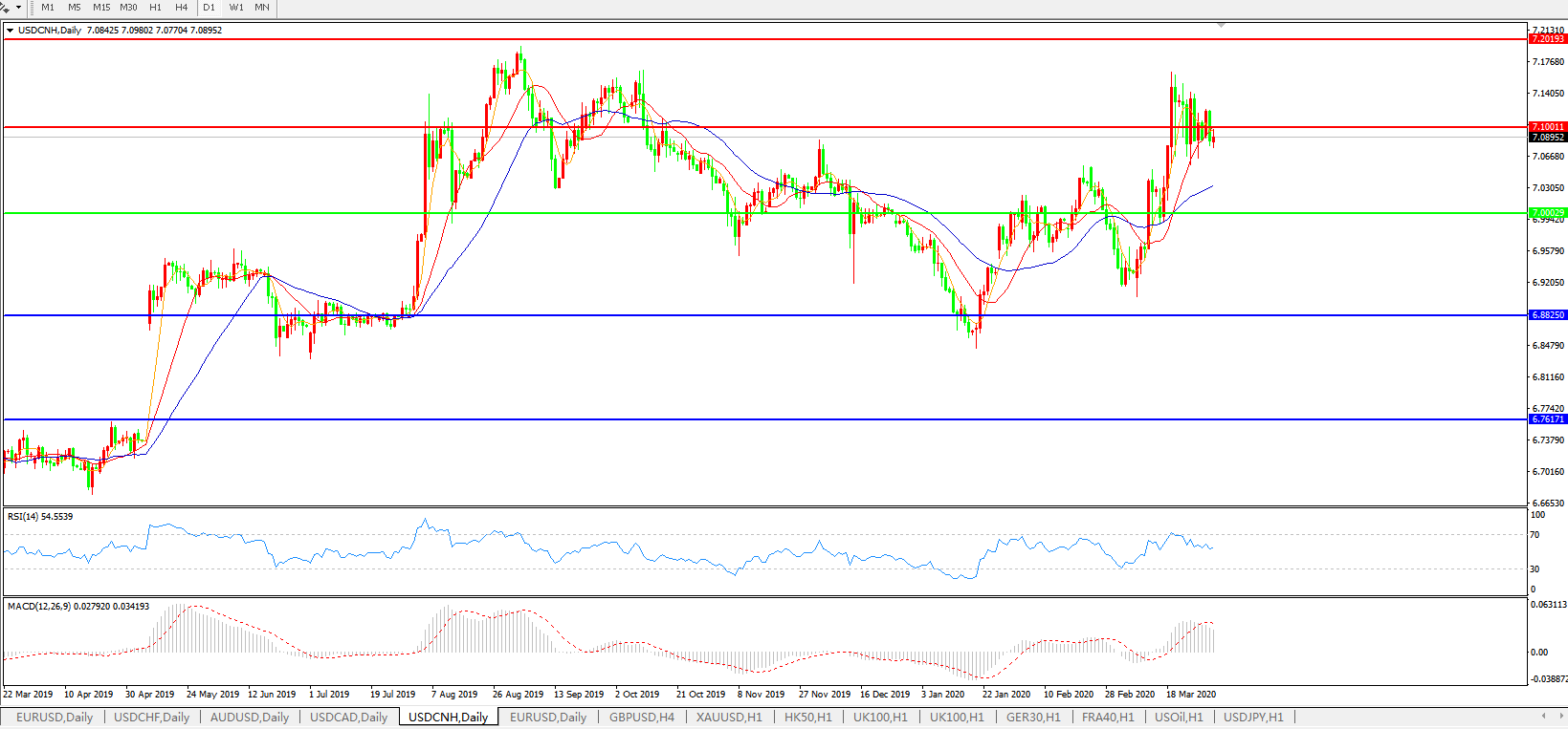 美元兑人民币USDCNH 日线图: