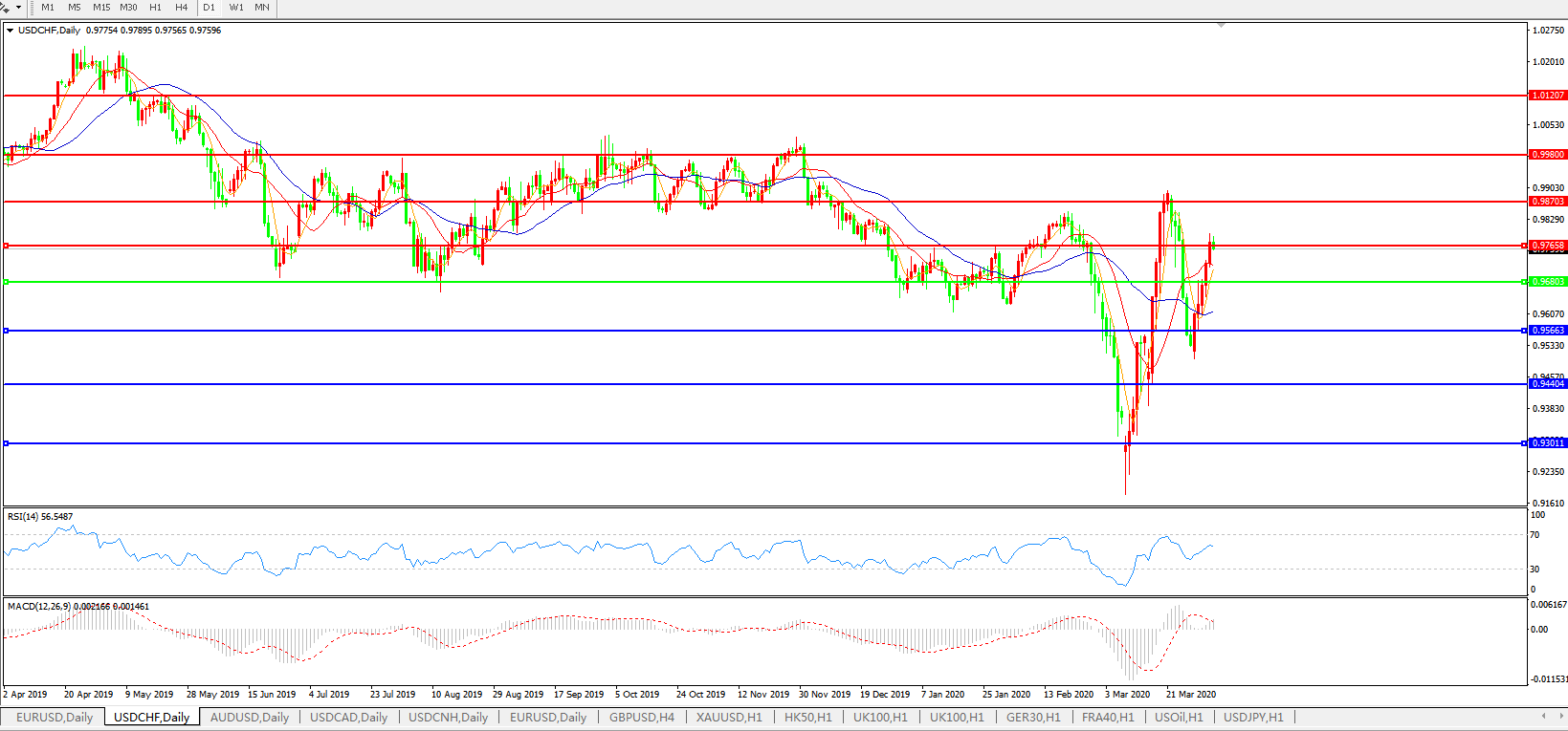 备选策略:0.9680下方看跌,目标0.9565、0.9440