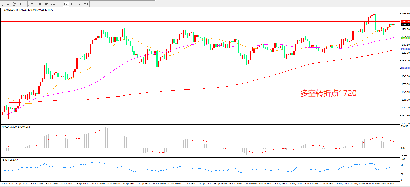 多空转折点:1720.00
