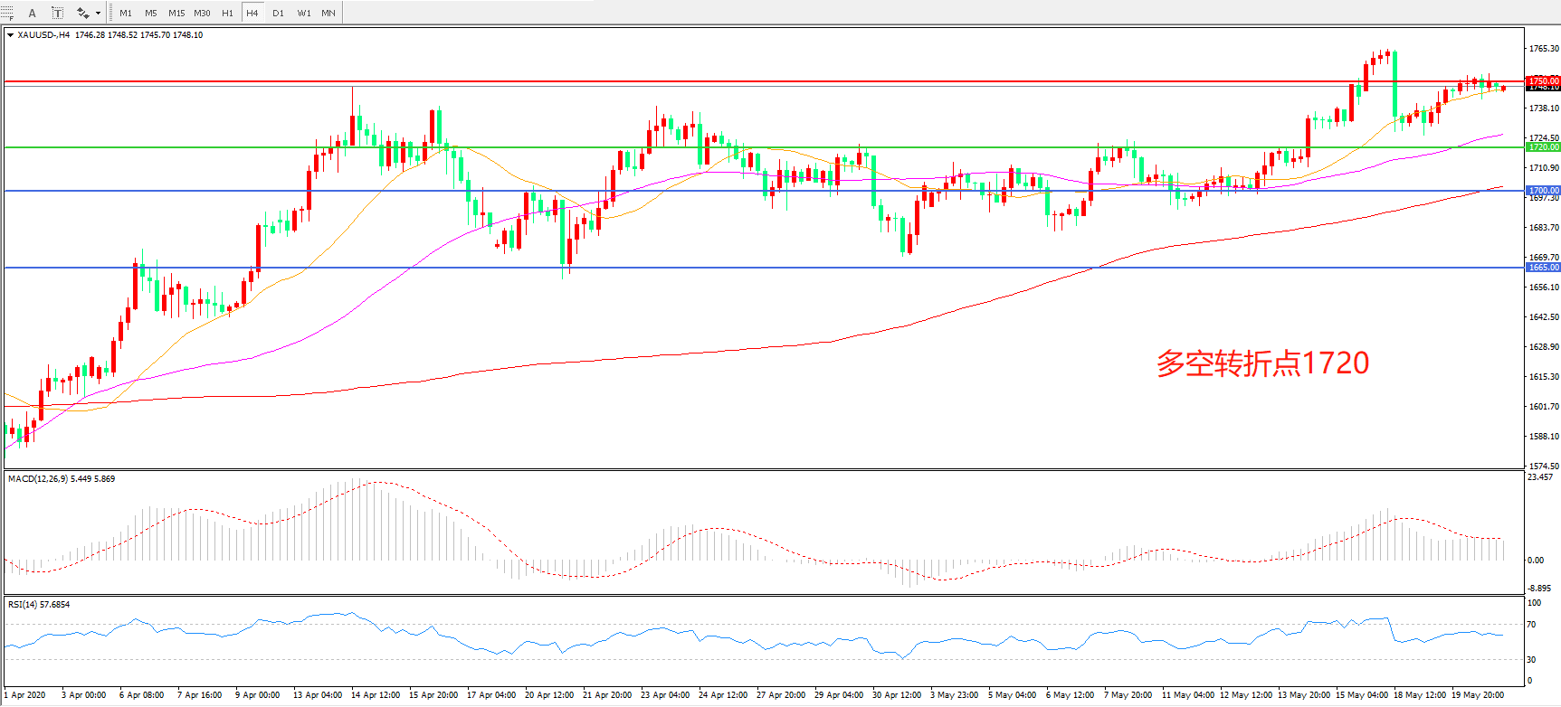 多空转折点:1720.00