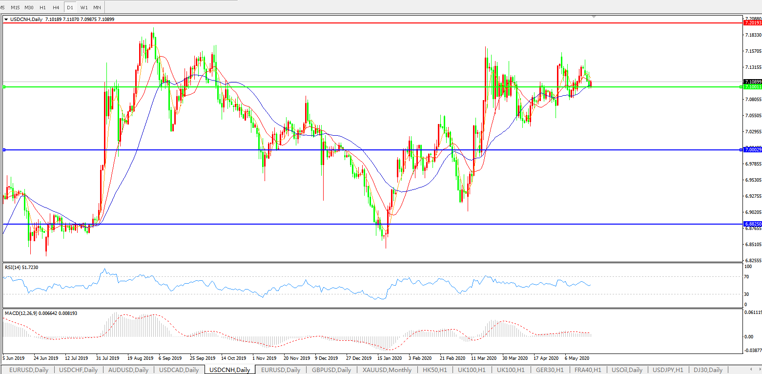 美元兑人民币USDCNH 日线图: