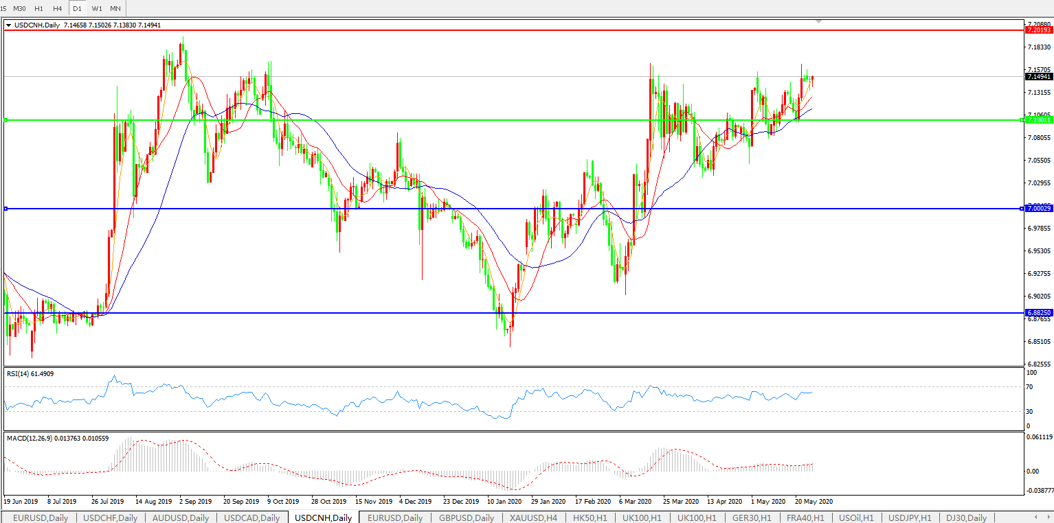 美元兑人民币USDCNH 日线图: