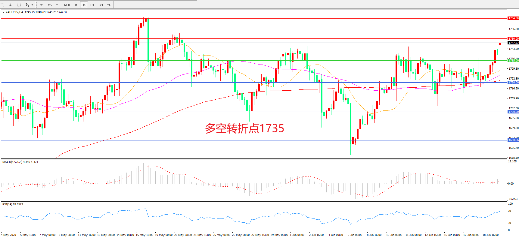 交易策略:在1735.00之上看涨,目标1750.00 1764.00