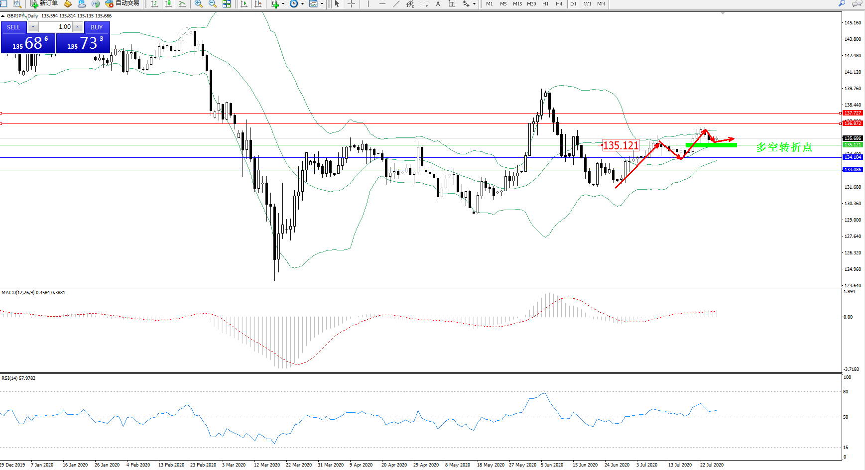 英镑兑日圆纠结于135.701附近徘徊,由于解除了针对疫情的限制,允许开设更多商店,英国6月份零售额再创新高。英国国家统计局周五说,零售销售较5月份增长13.9%,为1996年有记录以来的最高水平。英国的商业正在逐步复苏,此前英国政府的封锁措施导致4月份的零售销售暴跌18%。非必需品商店在6月中旬被允许重新开业,一些官员仍对经济快速反弹抱有希望。尽管如此,社交隔离措施意味着商店无法正常运营,引发了对长期复苏的担忧。