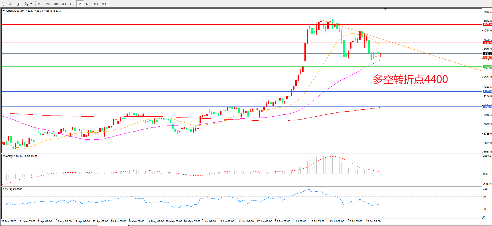 支撑位:4400.00 4165.00