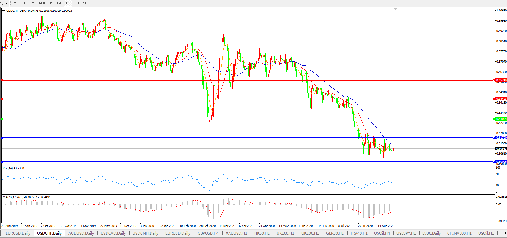 美元兑瑞郎USDCHF 日线图: