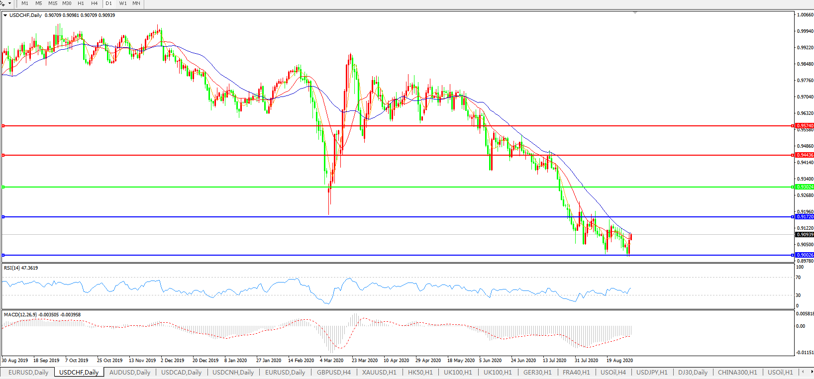 美元兑瑞郎USDCHF    日线图: