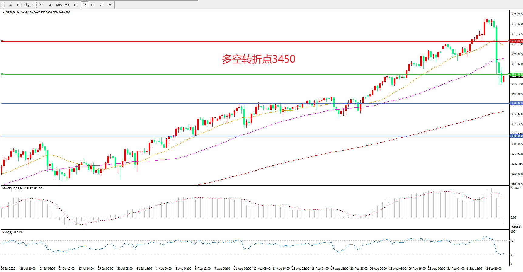 多空转折点:3450.00