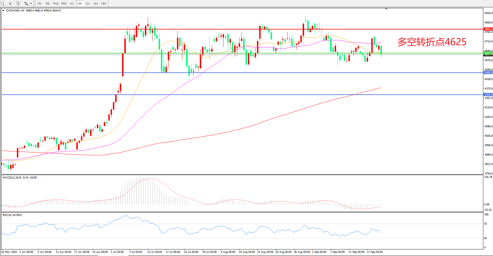 多空转折点:4625.00