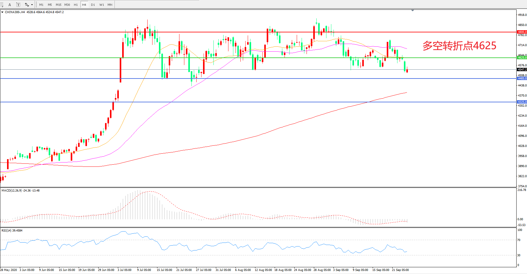 多空转折点:4625.00
