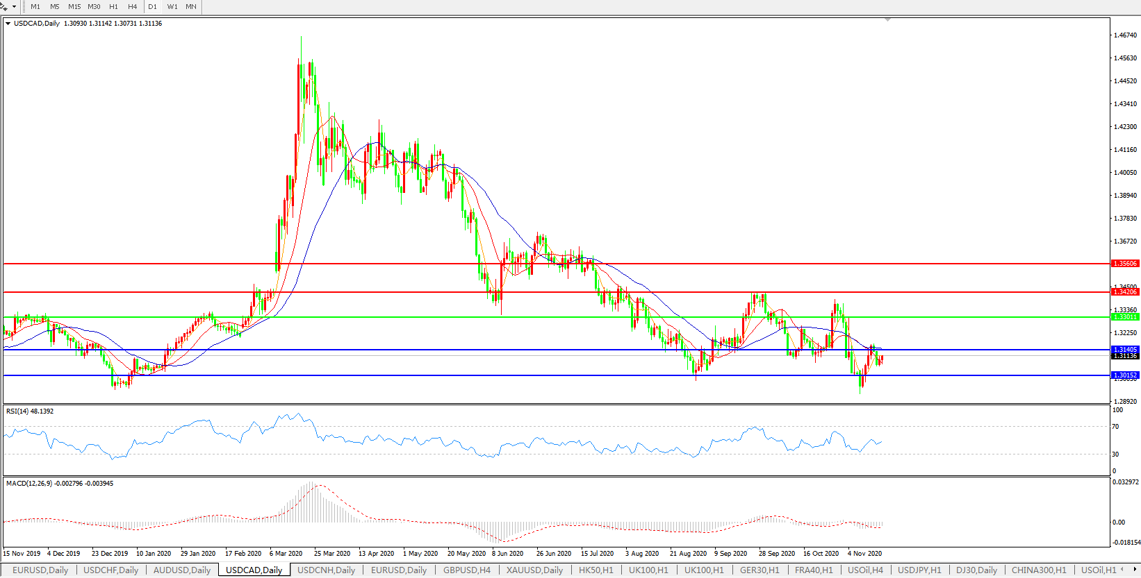 美元兑加元USDCAD    日线图: