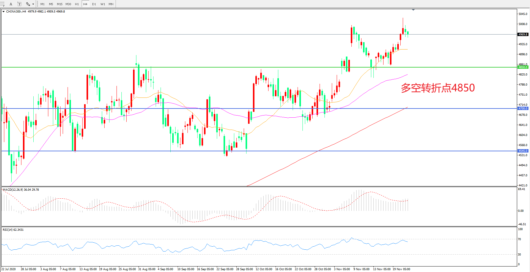 多空转折点:4850.00