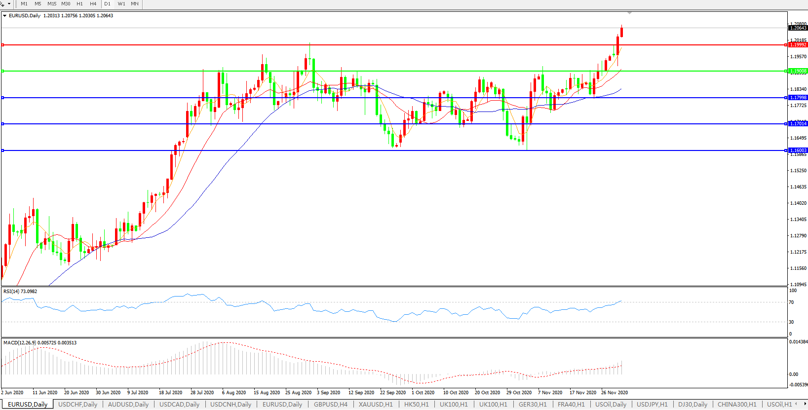 欧元兑美元EURUSD   日线图: