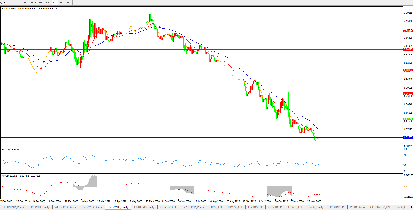 交易策略: 在6.6265之下,看跌,目标价位为6.5286,然后为6.3500。