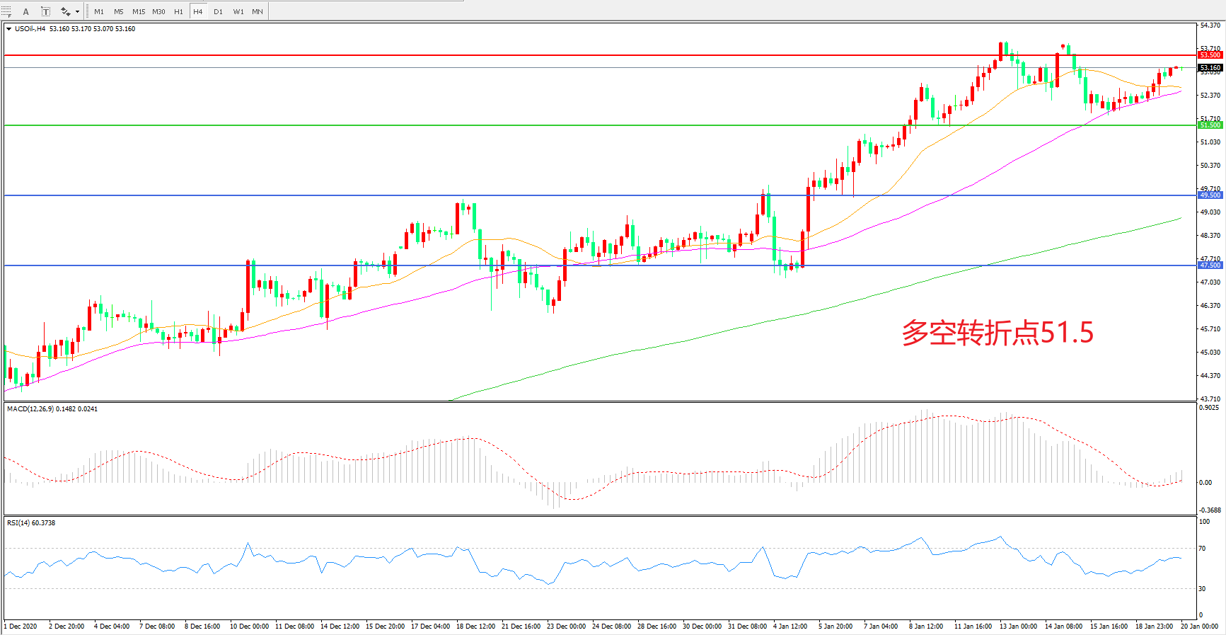多空转折点:51.50