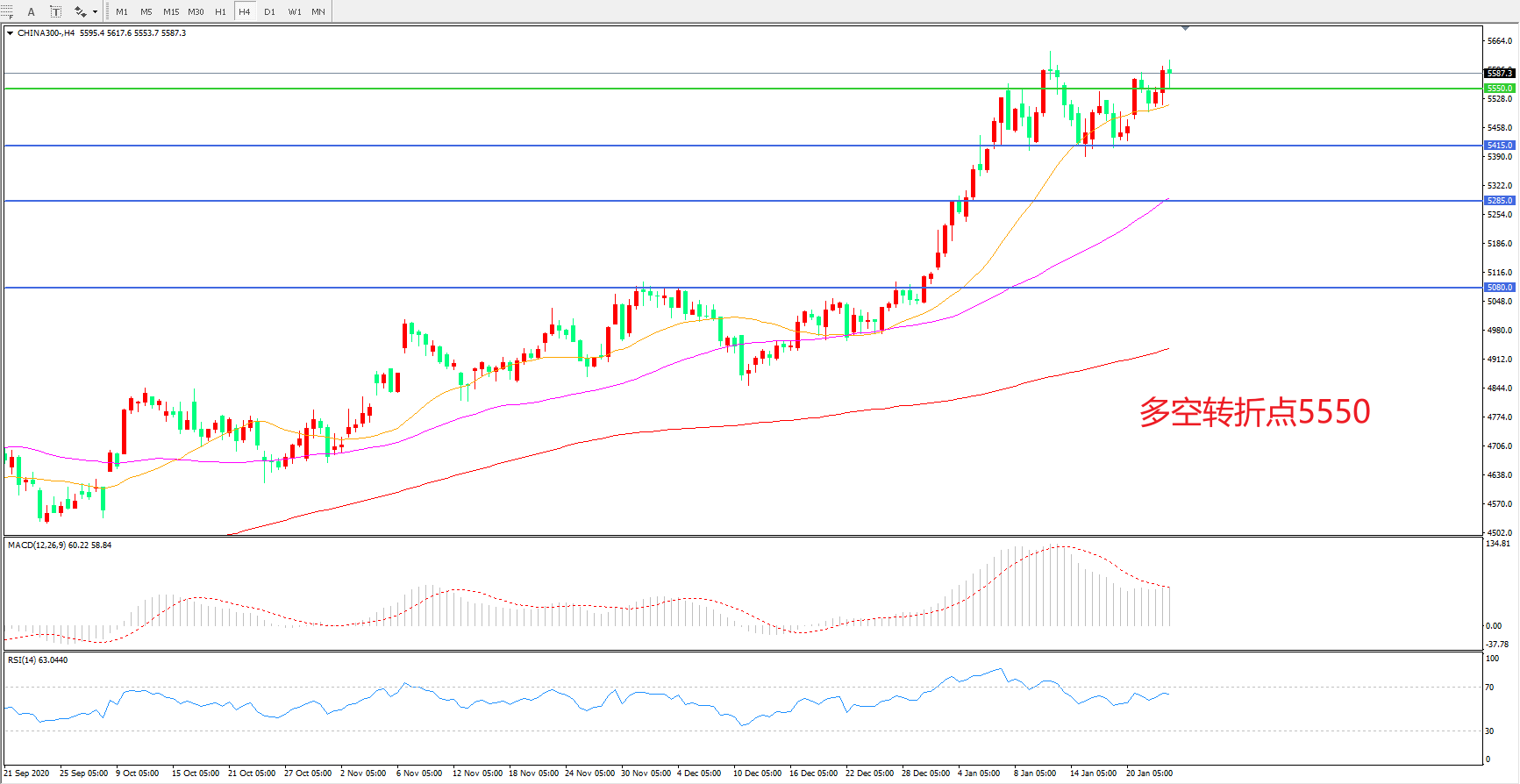交易策略: 在5550.00之上看涨,目标5680.00    5800.00