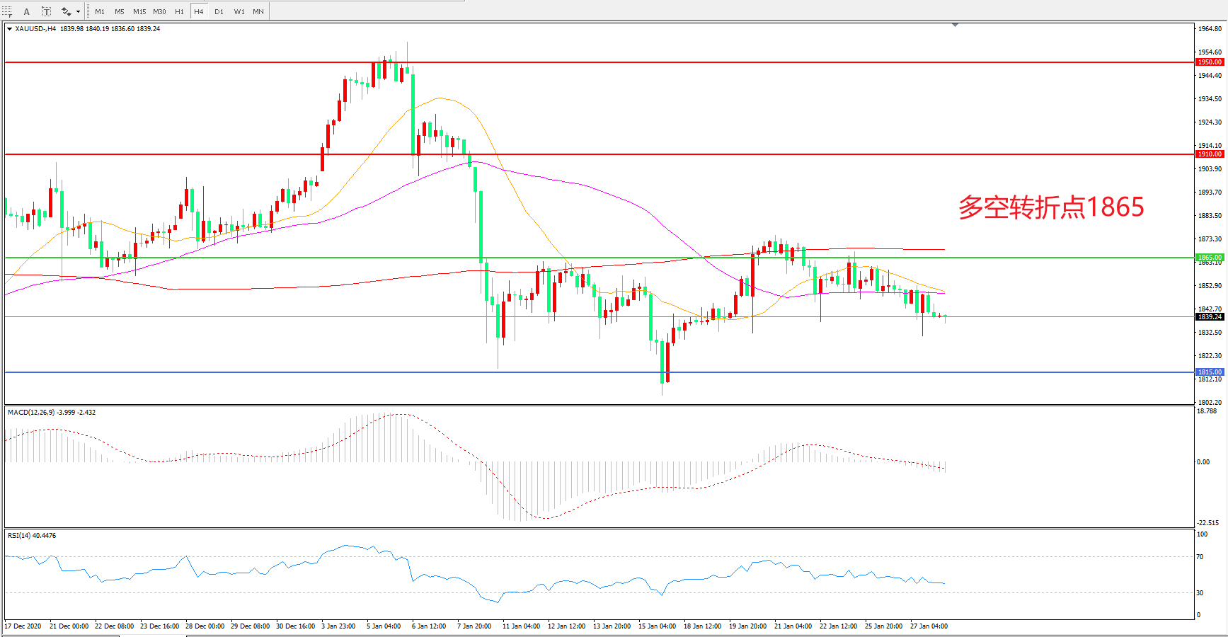 交易策略:在1865.00之下看跌,目标1815.00 1765.00