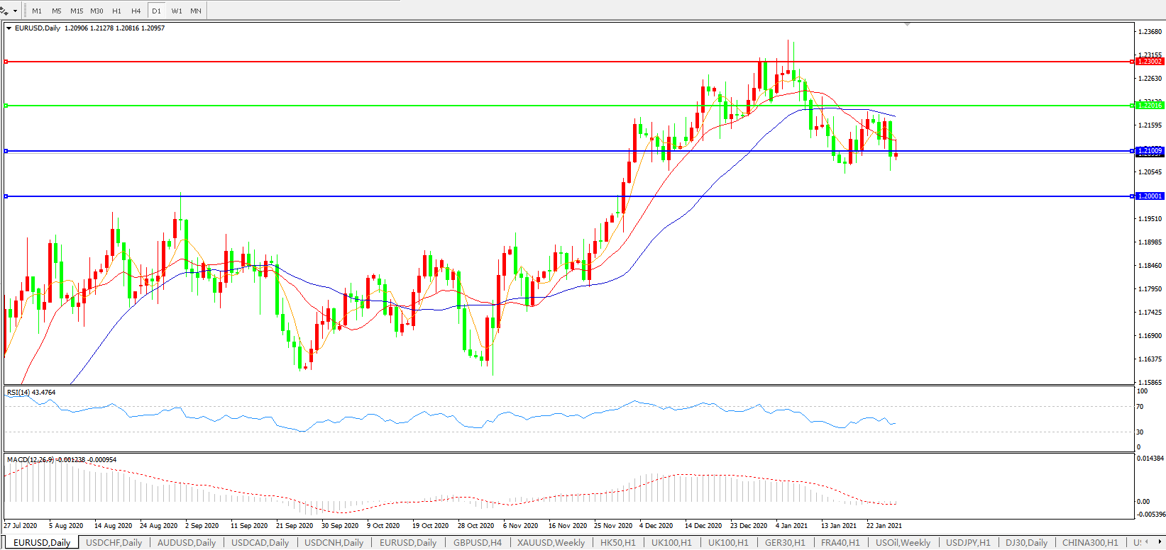 欧元兑美元EURUSD   日线图: